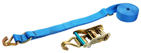 Conjunto com dispositivo de travamento para veículos na prancha do guincho, composto por catraca e cinta plana de 50mm para 4.000kg ou 5.000kg, acoplada diretamente a uma chapa e gancho J 1/2".