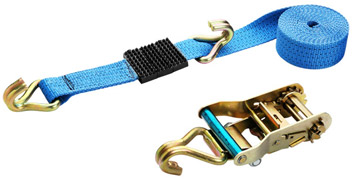 Conjunto com dispositivo de travamento para veículos na prancha do caminhão-cegonha. As proporções são maiores no comprimento e resistência das cintas que indicamos para amarração em guincho. Composto por catraca e cinta plana de 50mm de poliéster para 4.000kg ou 5.000kg, acoplada diretamente a uma chapa e gancho J 1/2".